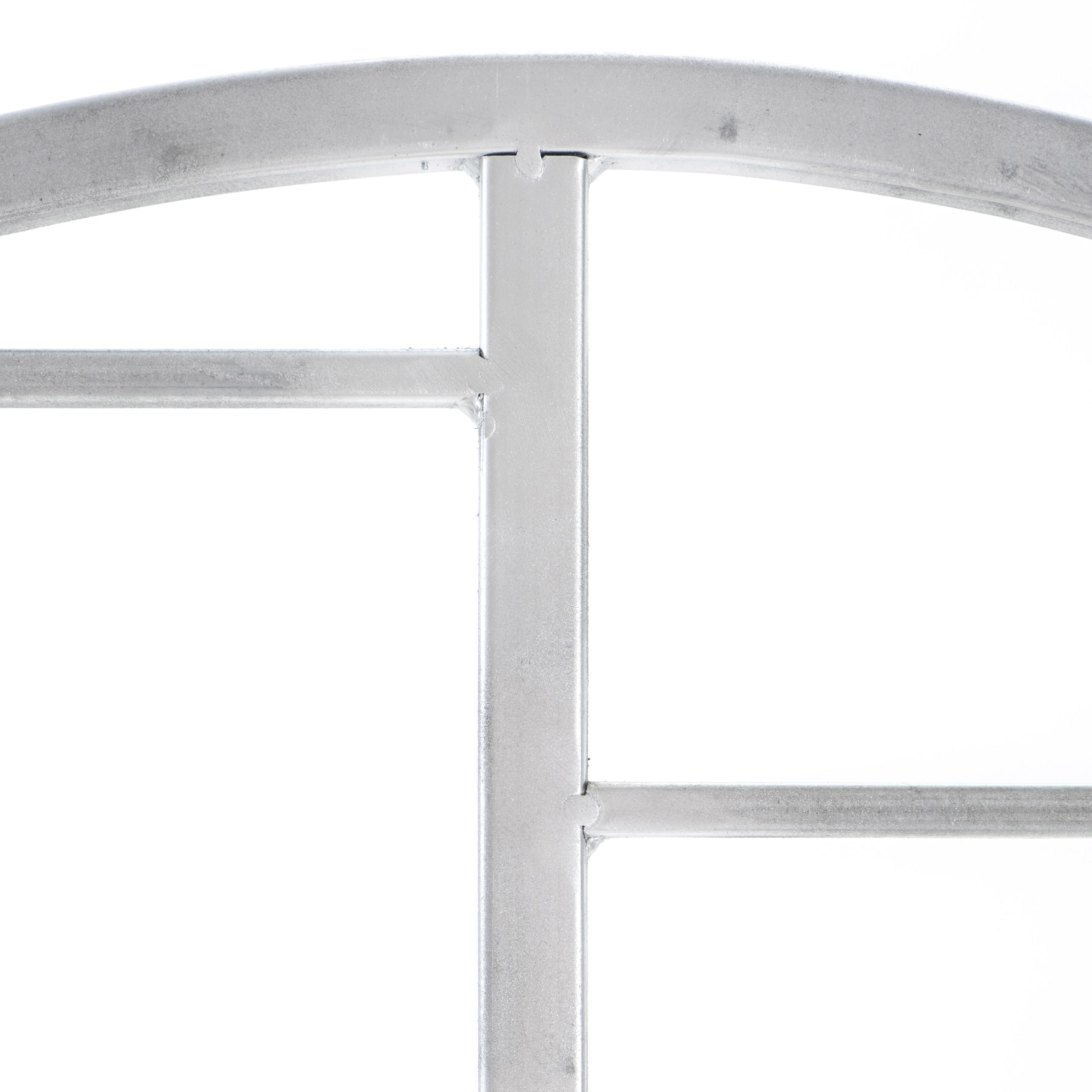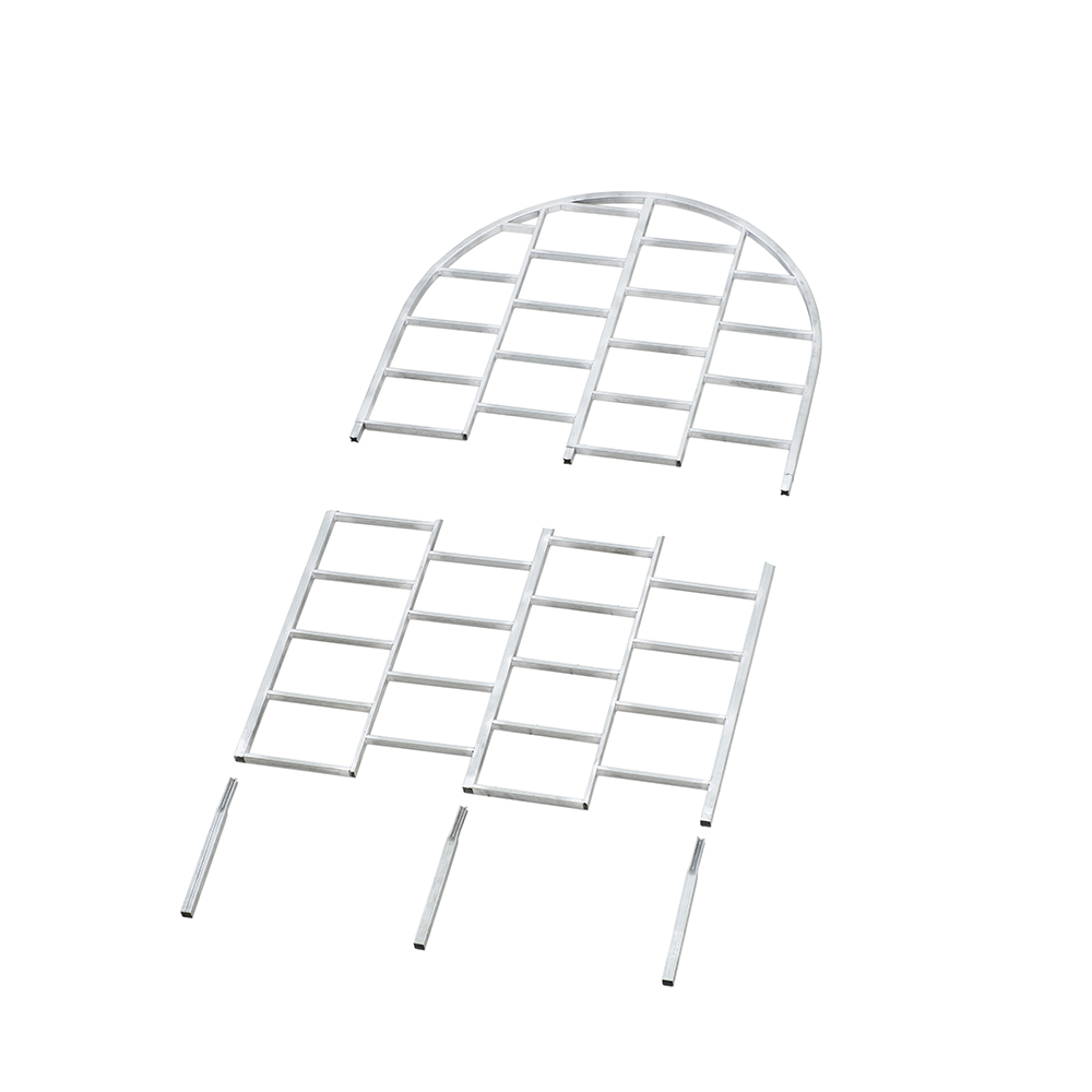 Внимание! Новая вариация товара: в верхней части изменен рисунок. Стало проще собирать: состоит всего их двух секций+ножки. Также новые размеры упаковки: 93 см*82 см*5 см. Вес с коробкой — 6,2 кг, вес без упаковки — 4,95 кг. Шпалера для цветов, вьющихся растений и винограда из оцинкованной трубы. Высота над землей — 150 см., ширина — 92 см. Высота вместе с ножками 172 см, длина ножек — 22 см.